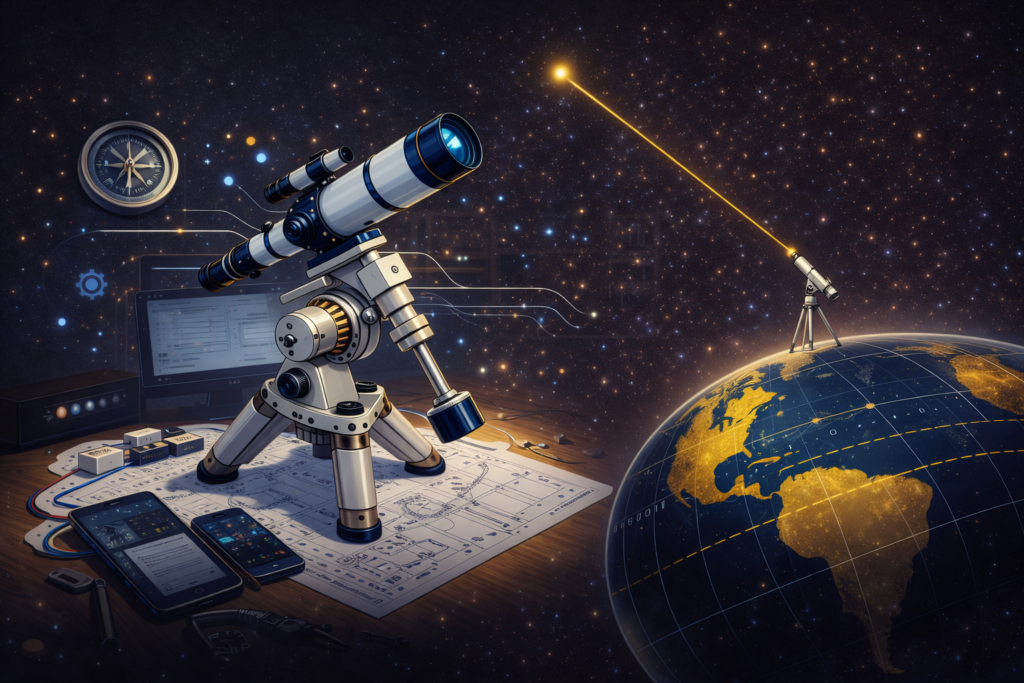 El montaje ecuatorial fue desarrollado por el astrofísico alemán Joseph von Fraunhofer a principios de la década de 1820. Dicho dispositivo es una base para telescopio que se mueve en dirección contraria a la rotación de la Tierra para contrarrestar el movimiento aparente de los cuerpos celestes; pero, para poder entender realmente cómo funciona, es necesario comprender algunos principios que rigen la manera en que se comporta nuestro planeta y cómo esto afecta nuestra percepción del cielo nocturno.